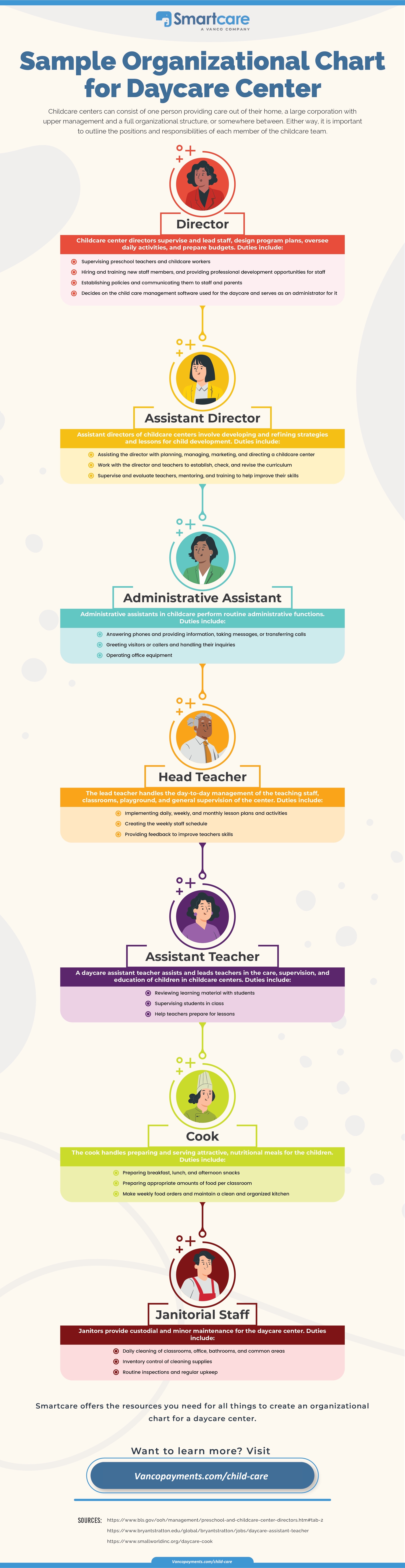 From your management team for the daycare center to your support staff, read on to find out how to include everyone in your organizational chart!